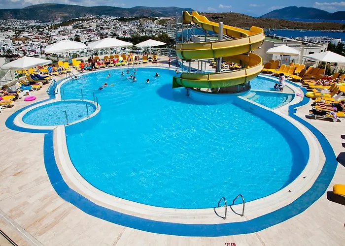 Situato a circa 2 km dal Castello San Pietro, il Azka Hotel Bodrum, a 5 stelle, offre Wi-Fi in tutta la struttura e un parcheggio privato gratuito. L'hotel dispone di 80 camere in una zona sul mare di Bodrum e si trova a circa 2 km da un luogo di interesse culturale come il Museo di Archeologia Subacquea di Bodrum.